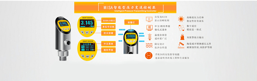數(shù)顯壓力開關(guān)PK40型 此產(chǎn)品結(jié)構(gòu)緊湊,堅(jiān)固耐用,顯示器外殼可以自由旋轉(zhuǎn)350°,適用機(jī)械設(shè)備不同位置的安裝,廣泛應(yīng)用于各類機(jī)床、泵和壓縮機(jī)、液壓/氣動(dòng)系統(tǒng)、和機(jī)械設(shè)備制造壓力測量領(lǐng)域。 產(chǎn)品采用高性能的調(diào)理芯片及集成電路,將傳感器毫伏或毫安信號(hào)轉(zhuǎn)換成標(biāo)準(zhǔn)電流或數(shù)字信號(hào),還可以快速設(shè)置開關(guān)量信號(hào)輸出,可以直接與上位機(jī)、PLC、各類智能儀表及控制監(jiān)測平臺(tái)直接通訊。 產(chǎn)品壓力范圍寬:-0.1MPa.0..100MPa.精度可以達(dá)到0.2%FS,產(chǎn)品長期穩(wěn)定性優(yōu)越,穩(wěn)定可靠。